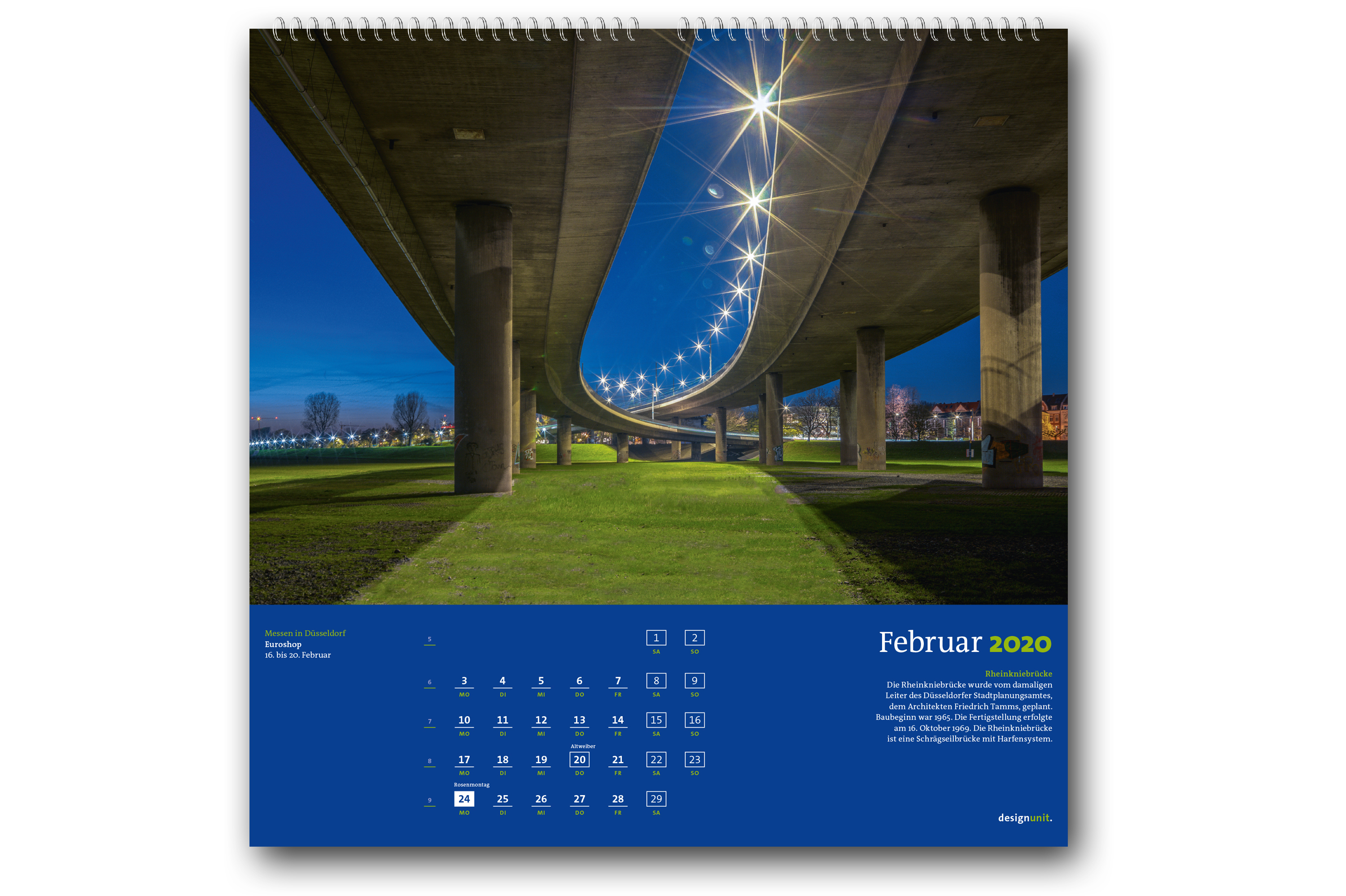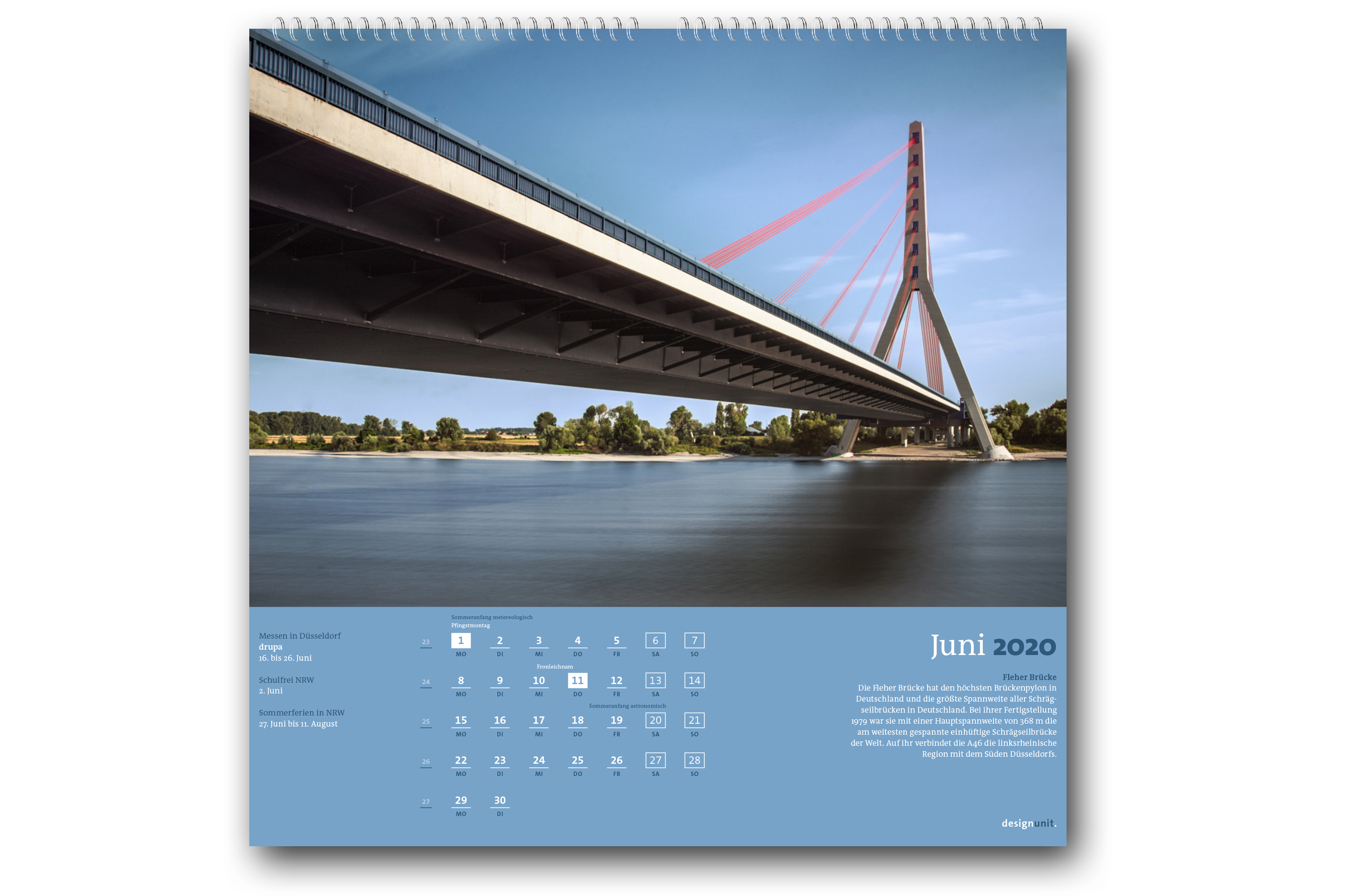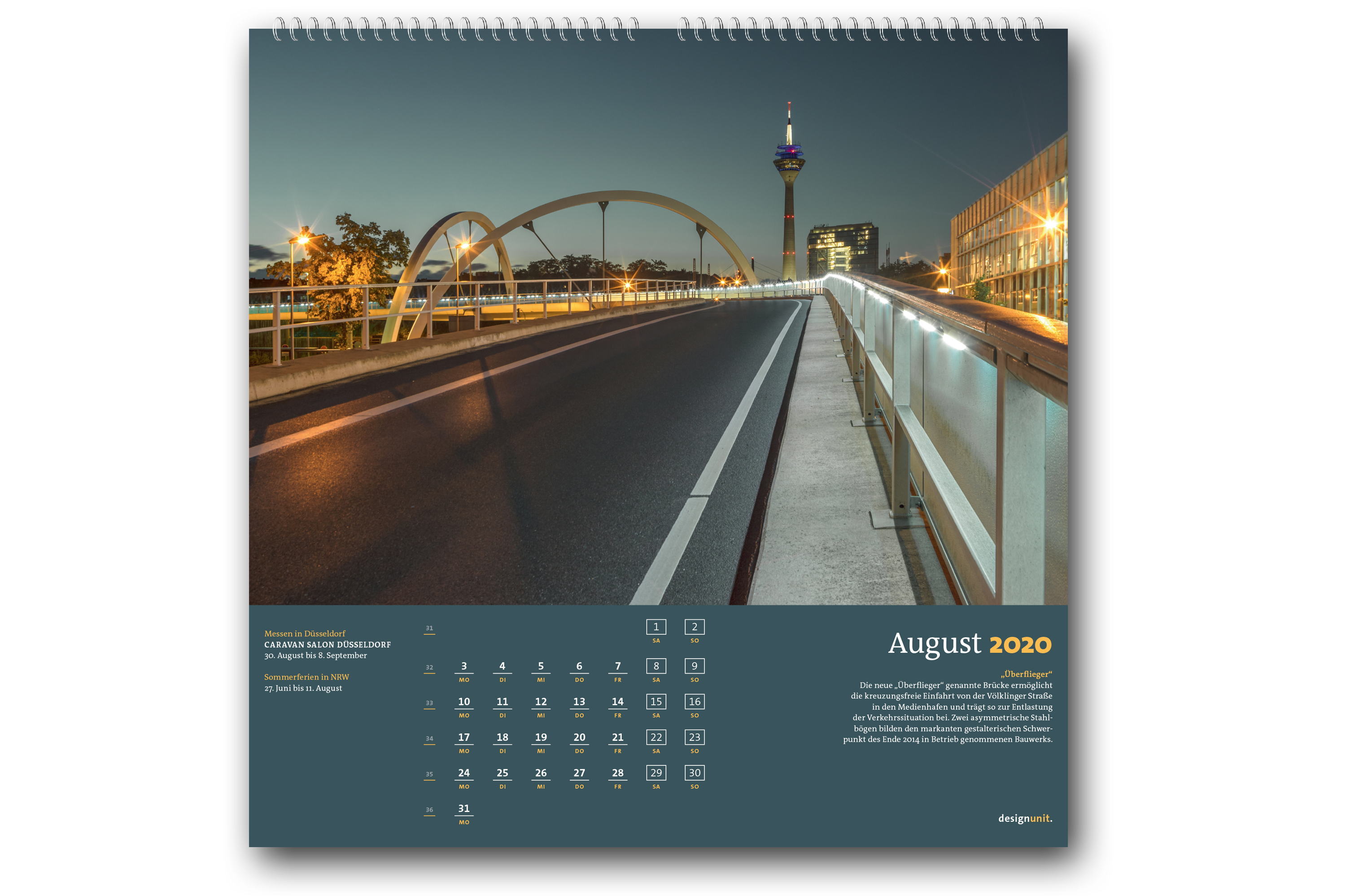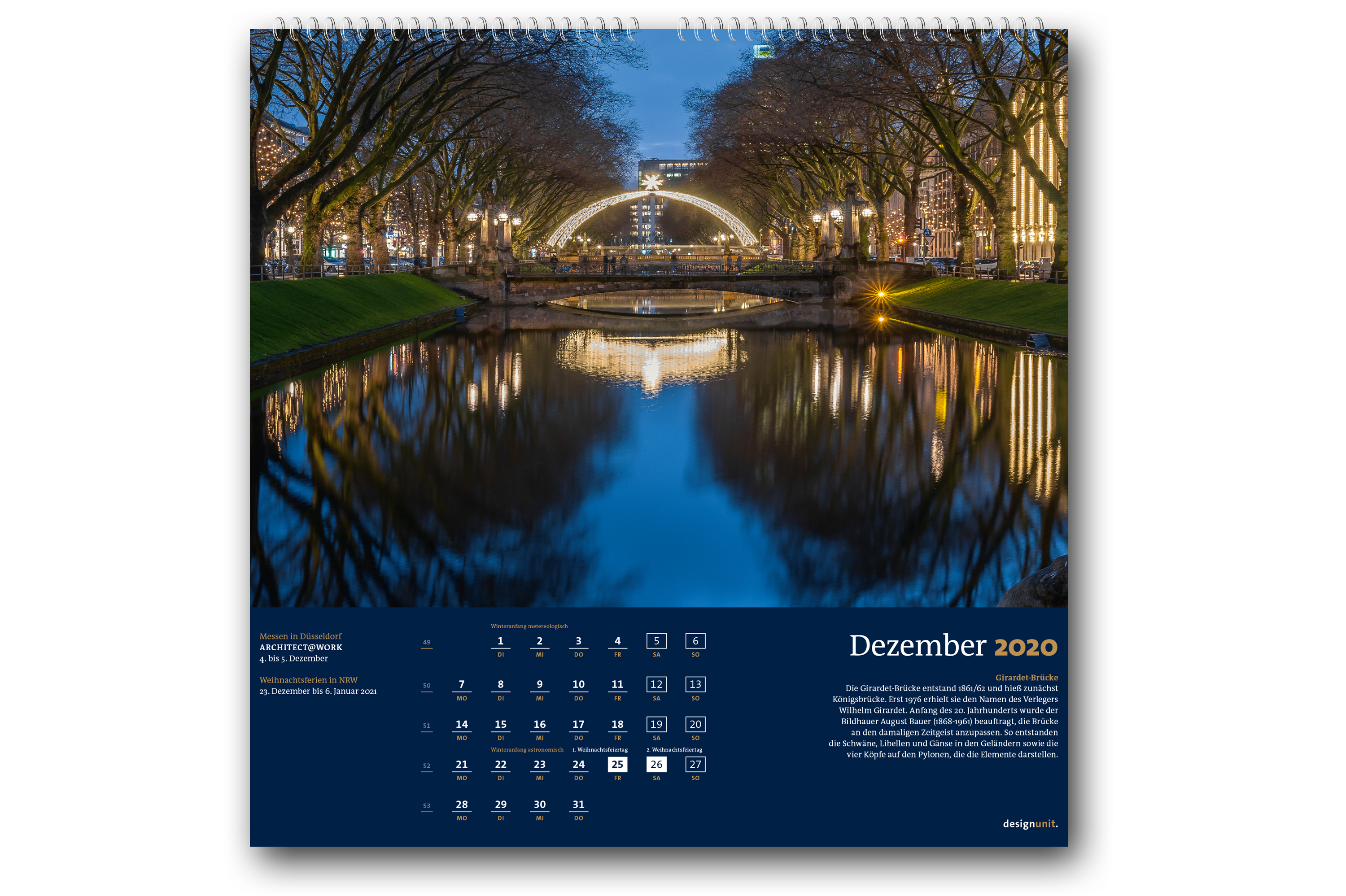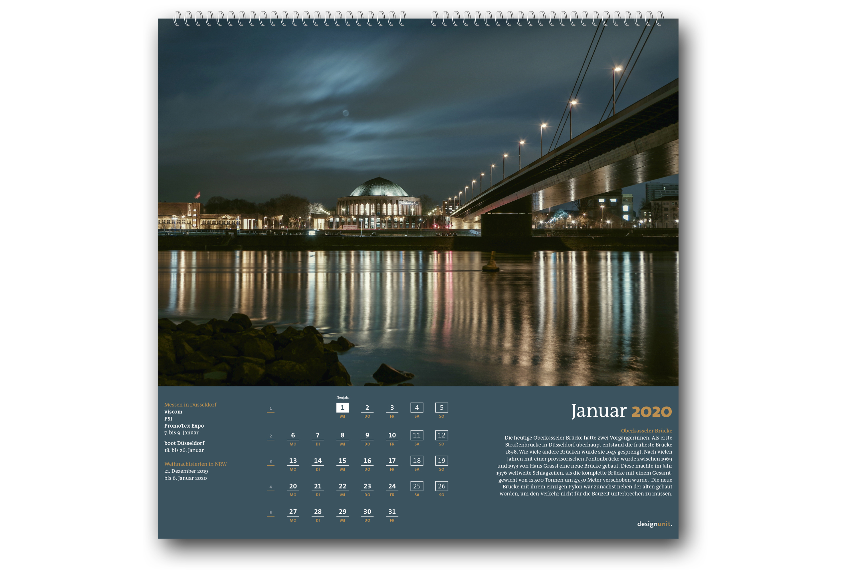 Die Kalender „Düsseldorf 2020, Deine Brücken“ und „Düsseldorf 2020, Deine Skulpturen“ können im regionalen Buchhandel sowie online in der designunit-edition erworben werden.