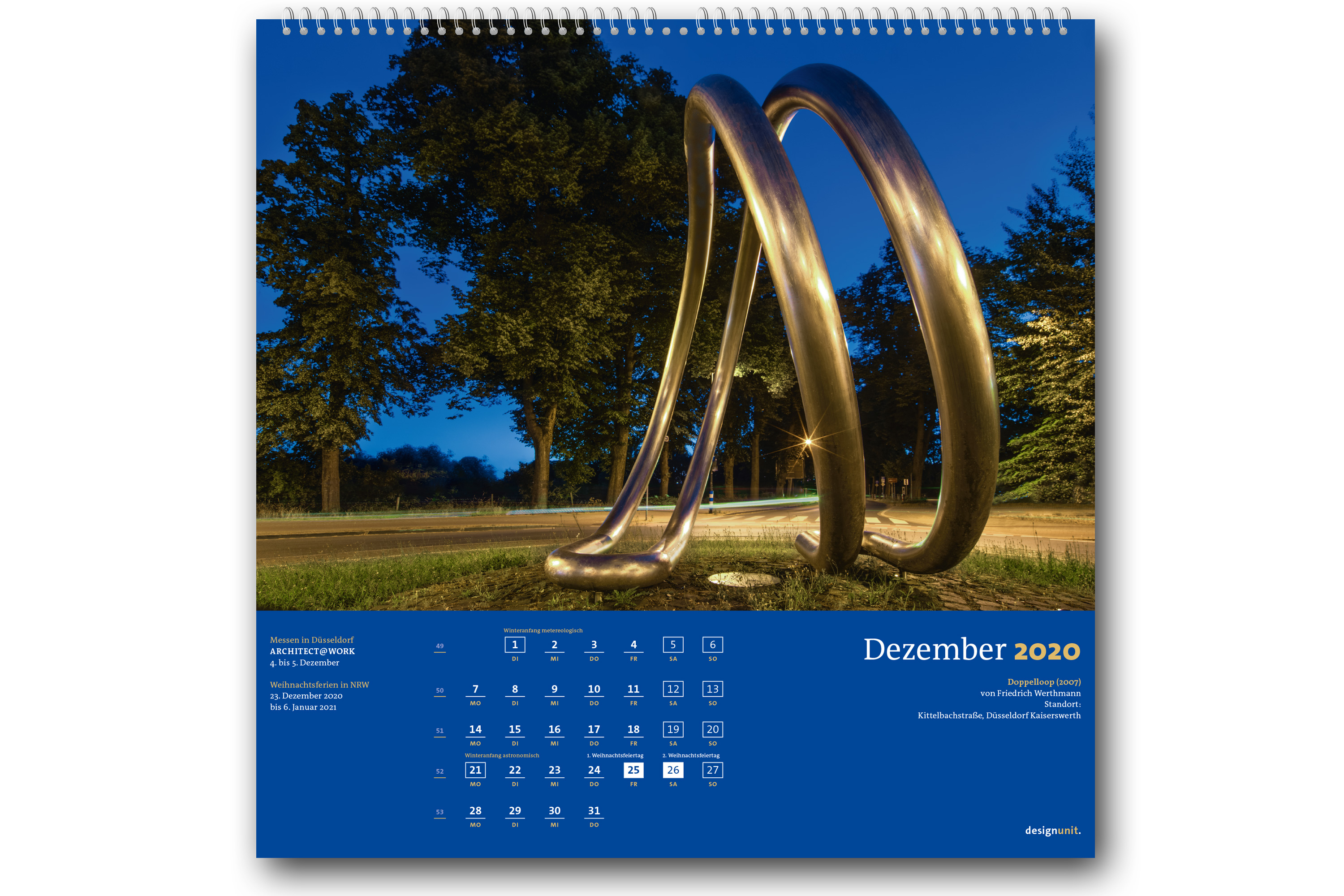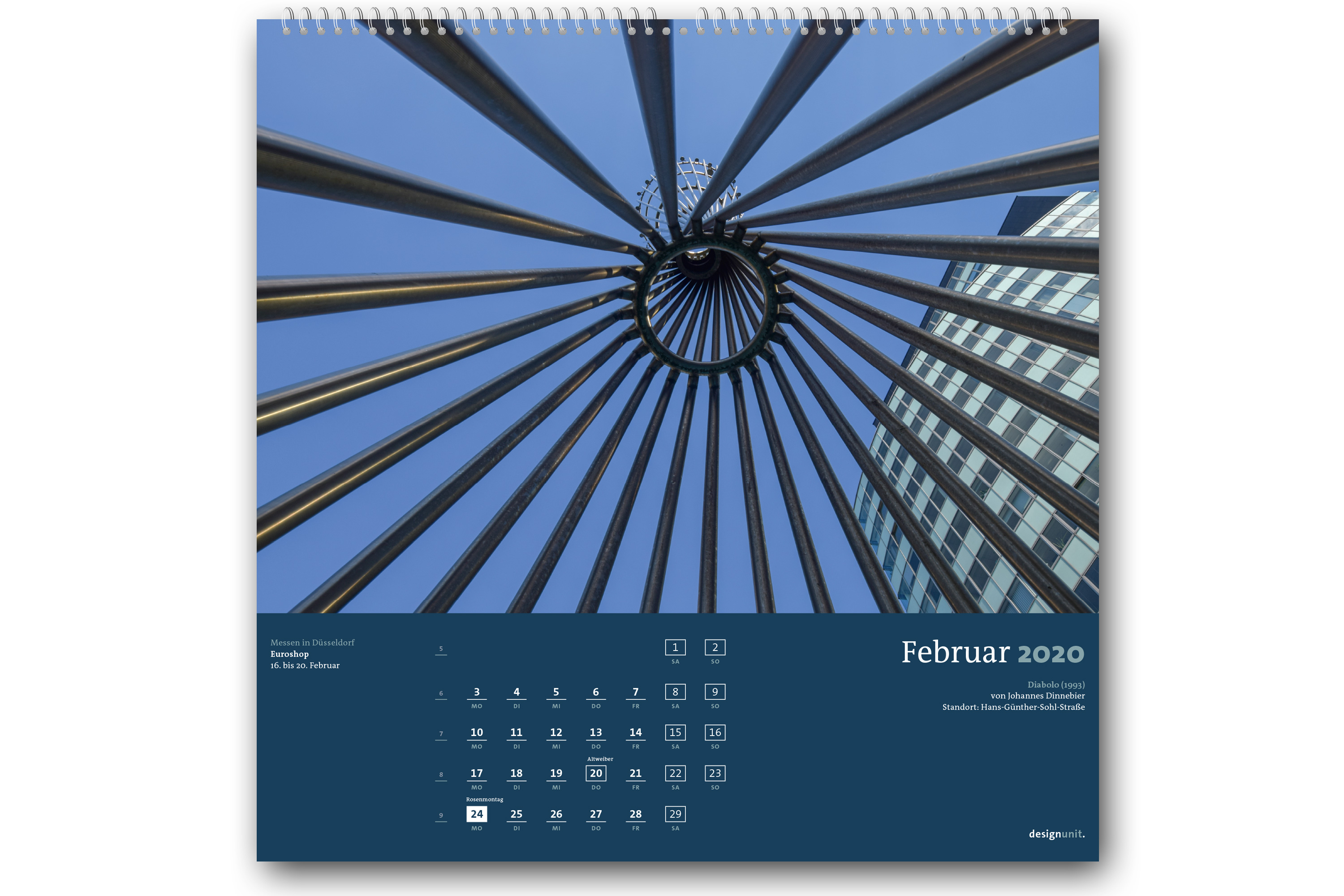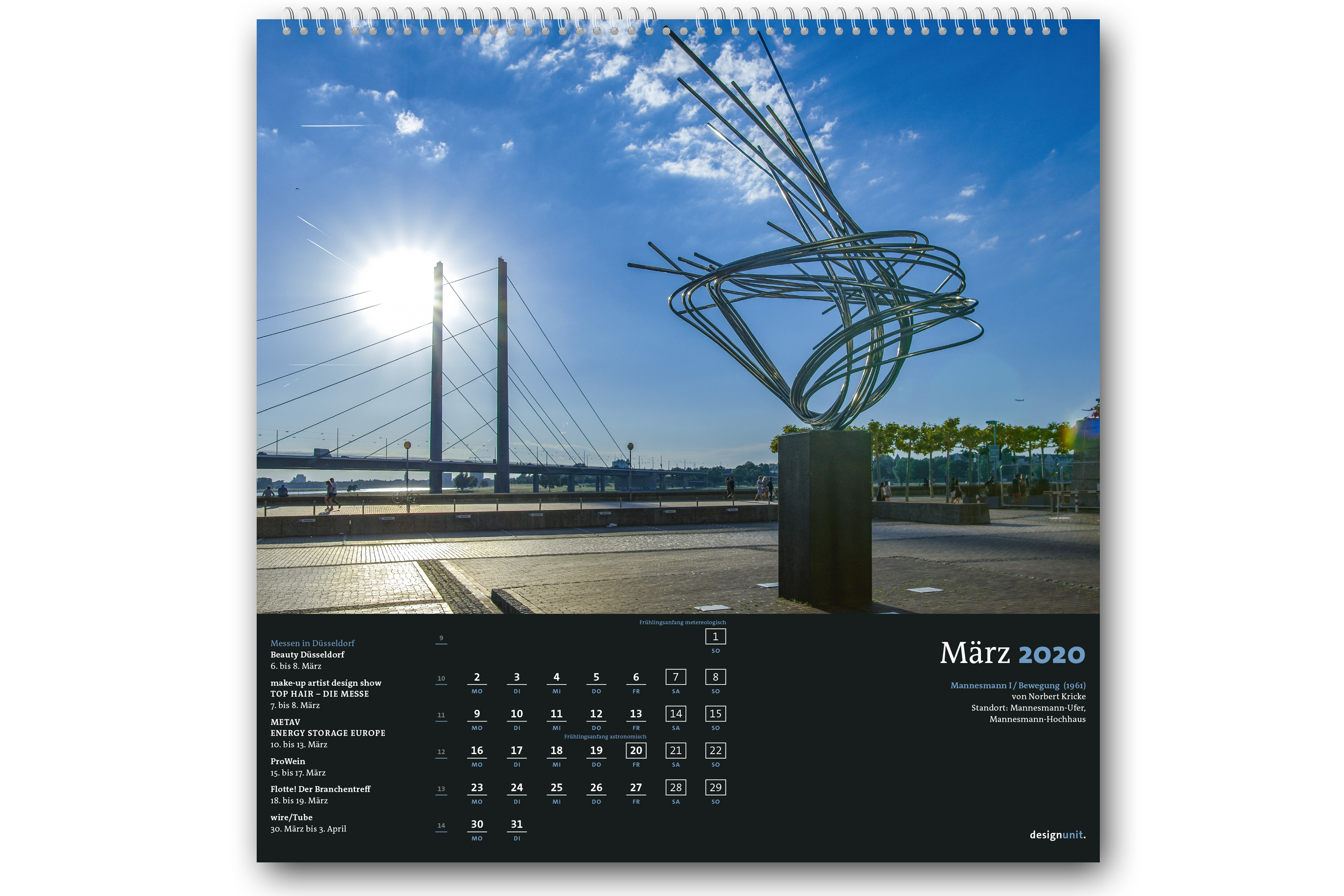 Die Kalender „Düsseldorf 2020, Deine Brücken“ und „Düsseldorf 2020, Deine Skulpturen“ können im regionalen Buchhandel sowie online in der designunit-edition erworben werden.