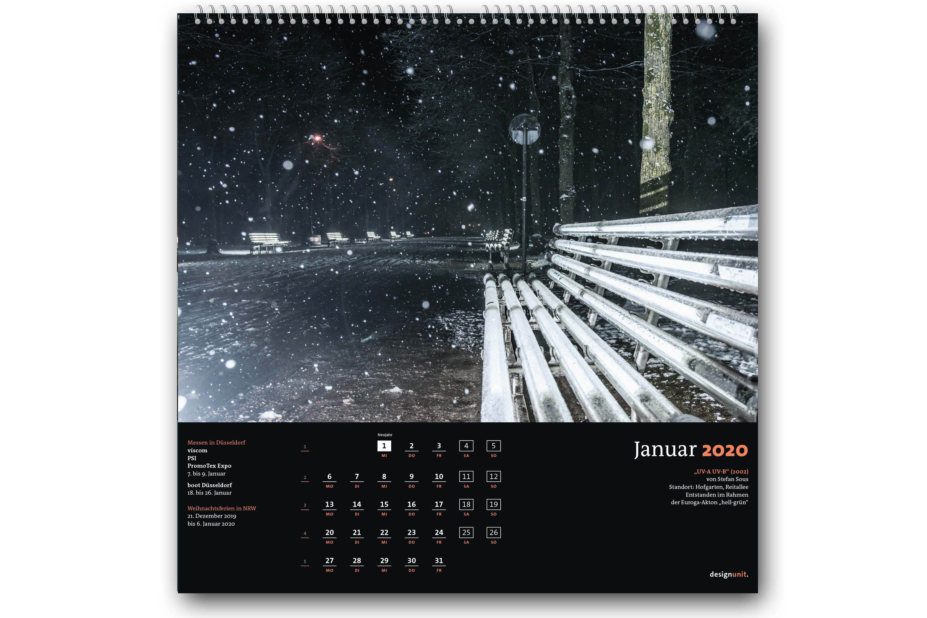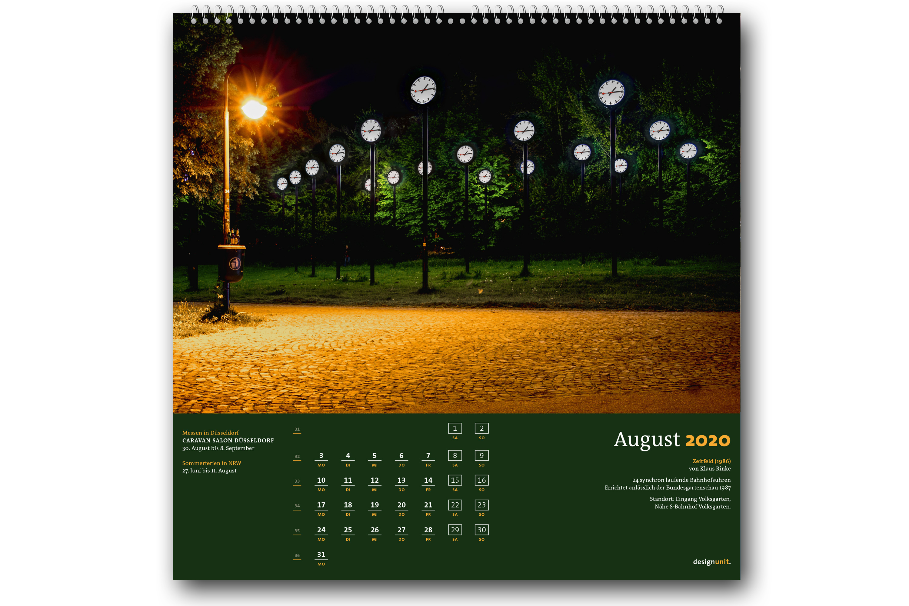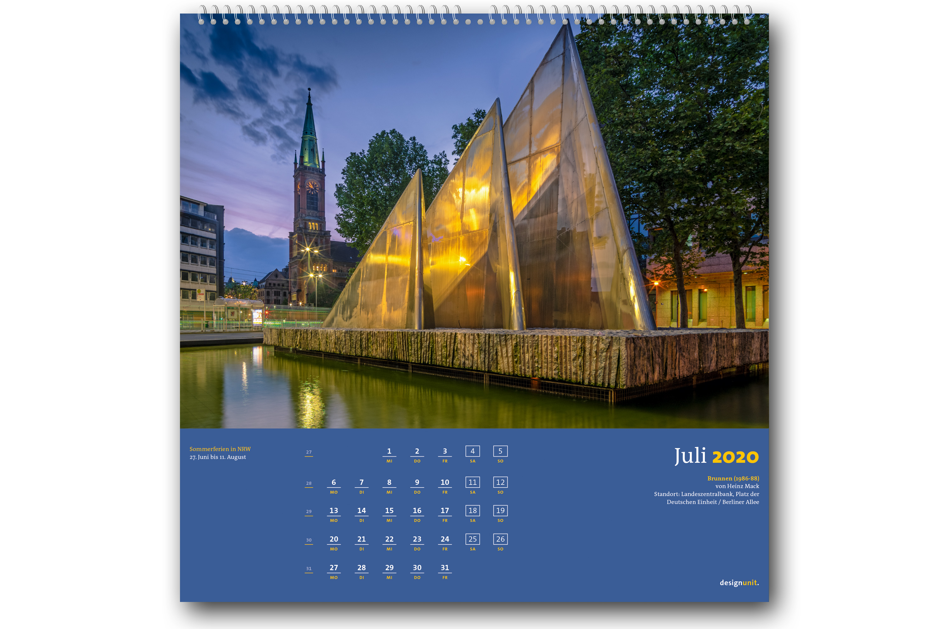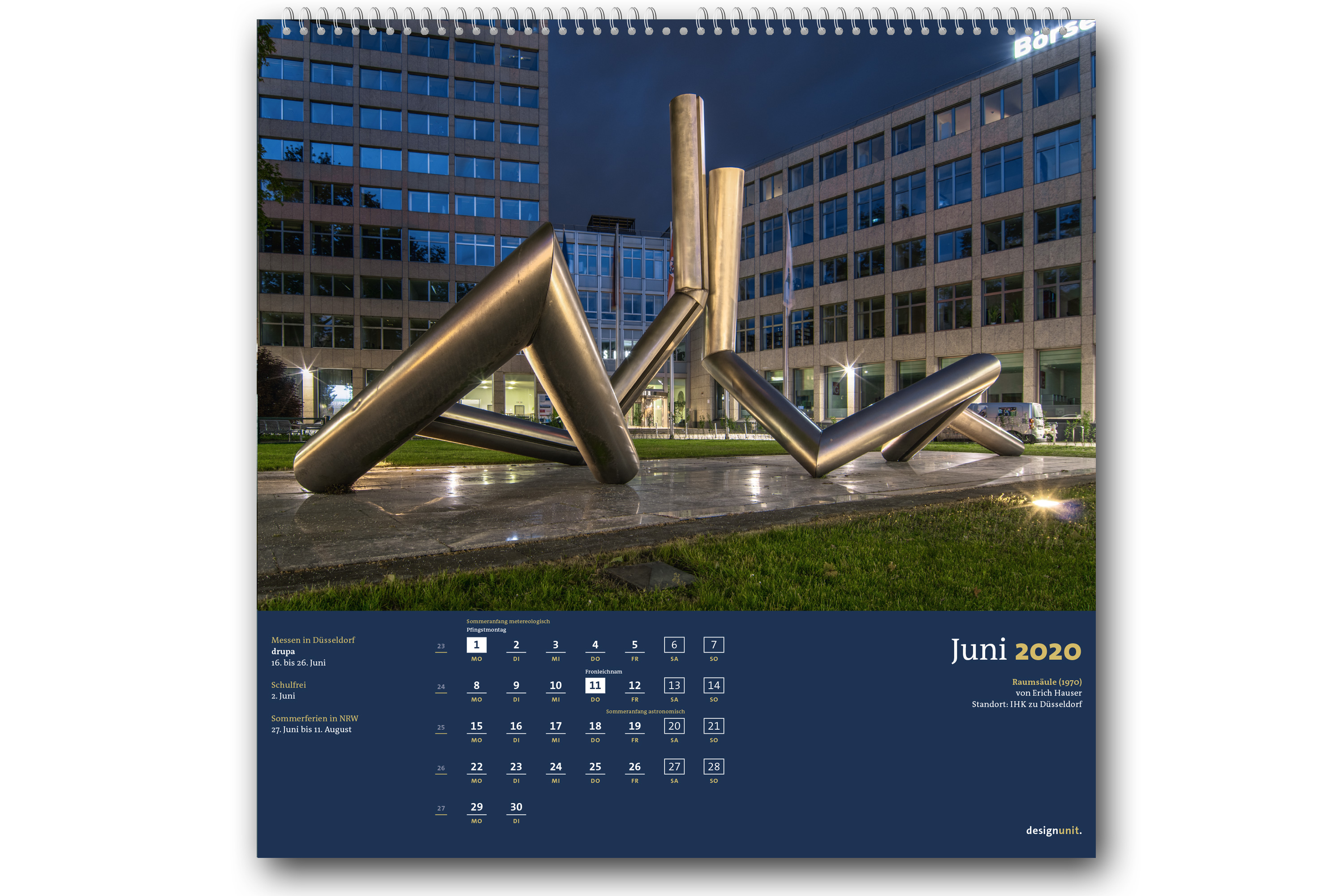 Die Kalender „Düsseldorf 2020, Deine Brücken“ und „Düsseldorf 2020, Deine Skulpturen“ können im regionalen Buchhandel sowie online in der designunit-edition erworben werden.