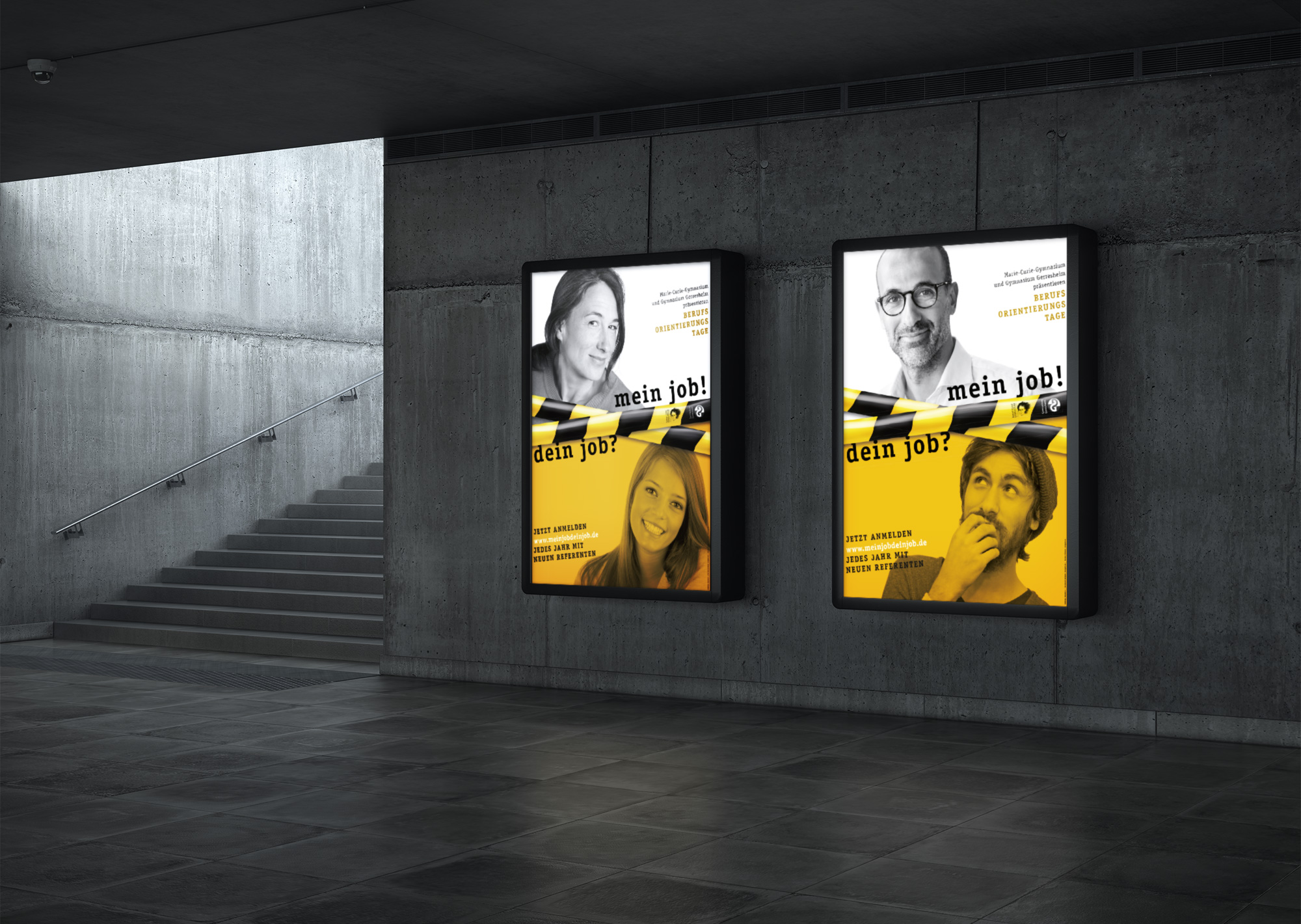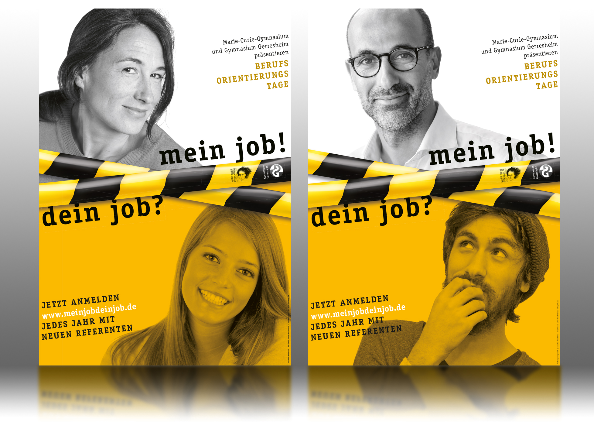 Gemeinsam einigt man sich auf ein Corporate Design, dass den Baustellenhaften Charakter der Berufswahl visualieren soll. designunit erarbeitet eine Website, Plakate, das Logo und Programmhefte und dank des gemeinsamen Einsatzes Aller wird die Veranstaltung 2020 zum fünften Mal stattfinden