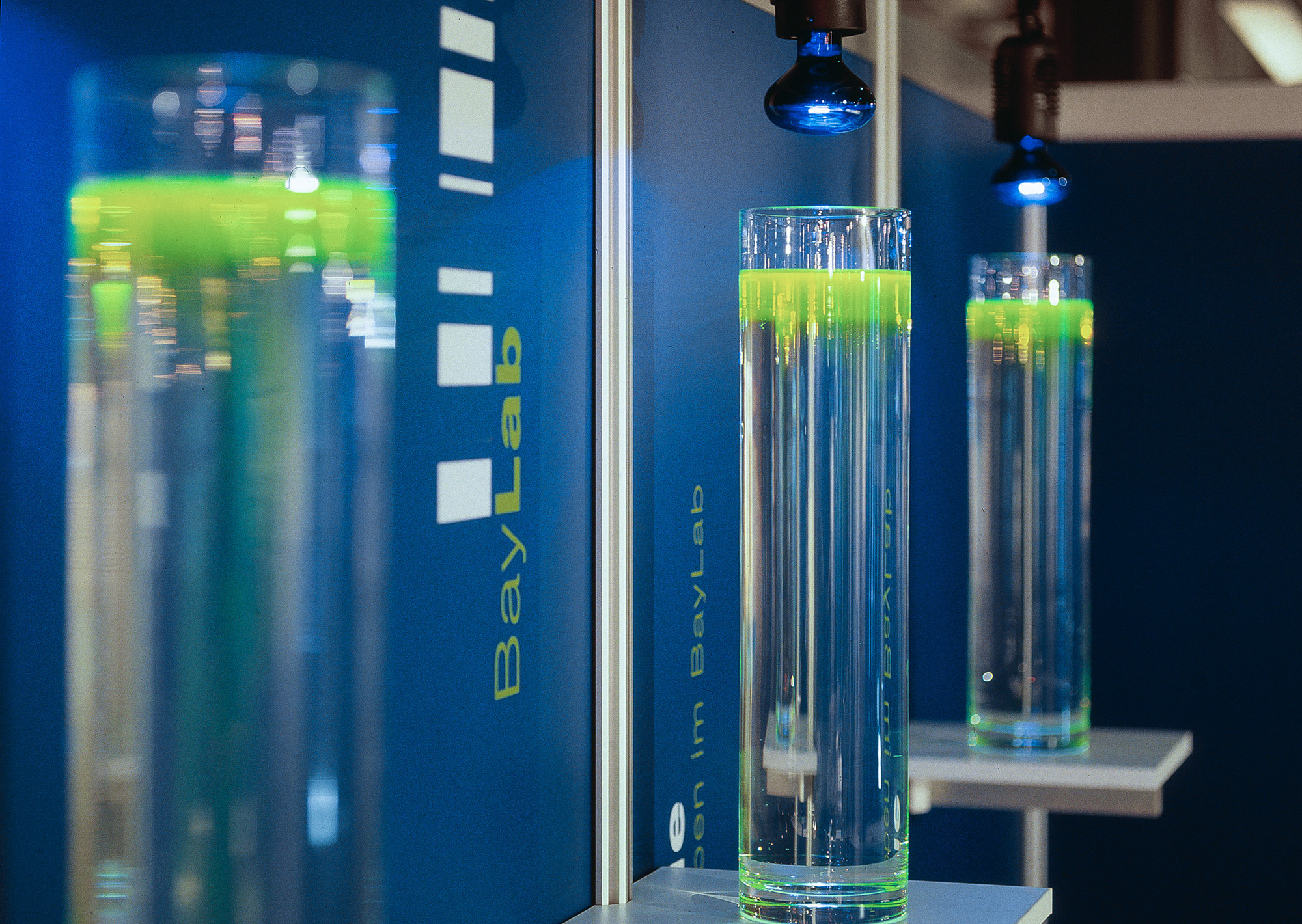 2001, im Jahr der Lebenswissenschaften, beauftragt Bayer Healthcare designunit mit der Konzeption und Realisation einer interaktiven Ausstellung zur Themenkomplex der Wirkstoffsuche. Im Deutschen Technik-Museum in Berlin wird der im Corporate Design des BayLab realisierte Messestand zum Publikumsmagneten. Das Konzept des Begreifens durch Interaktion wird durch die erprobten BayLab-Labors erweitert, die auf diese Weise gleichzeitig beworben werden. Gemeinsam mit den engagierten Fachkräften von Bayer gelingt es designunit dem Publikum den komplexen Prozess der Wirkstoffsuche verständlich zu machen.